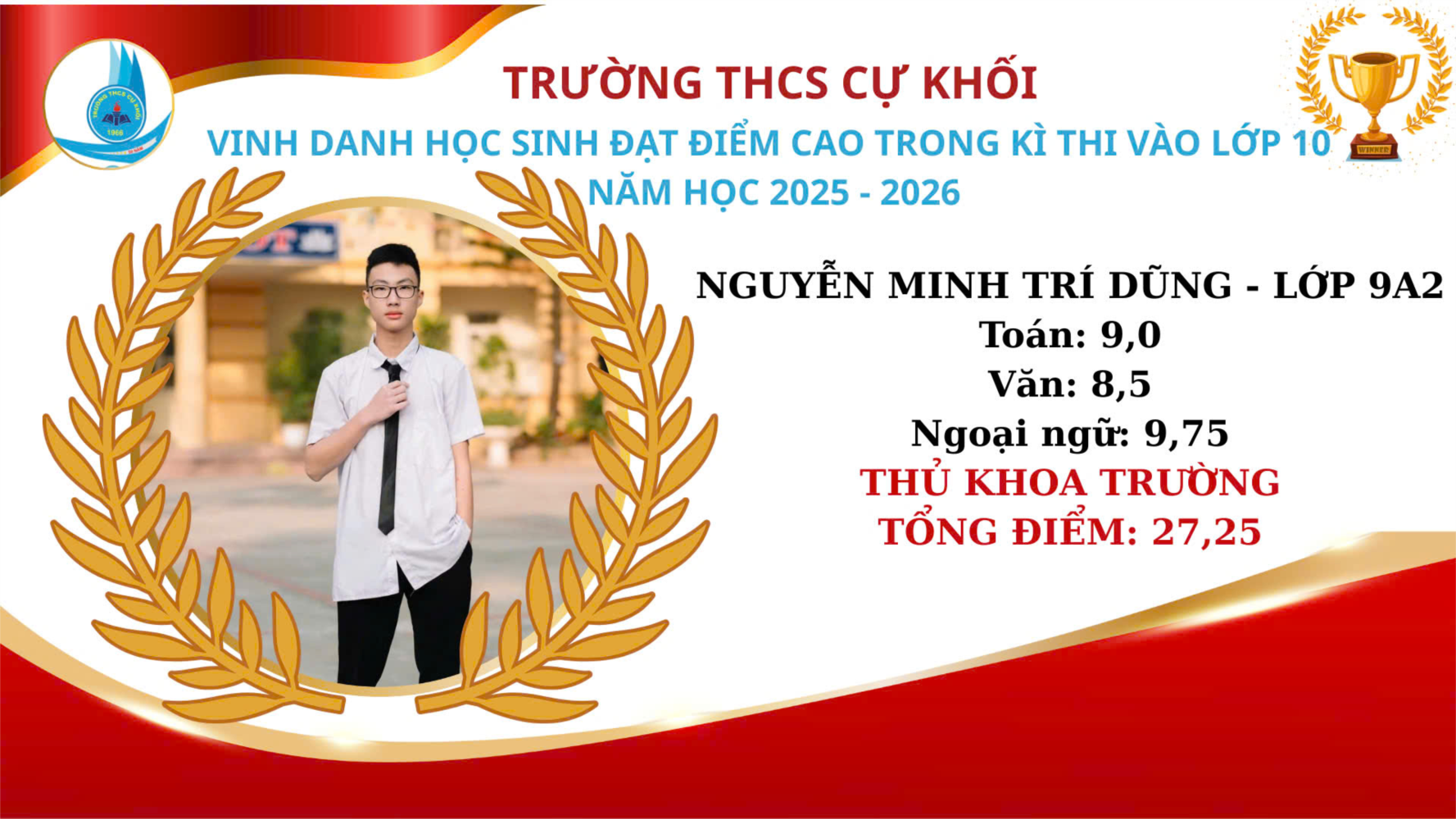 Chúc mừng các em đã đạt thành tích cao trong kì thi vào lớp 10 THPT. Đây là một thành tích tuyệt vời của các em, cũng như của nhà trường.