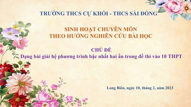 Thực hiện kế hoạch chuyên môn về việc tổ chức “Sinh hoạt chuyên môn liên trường”, ngày 10/02/2023 tổ Tự nhiên trường THCS Cự Khối đã thực hiện buổi sinh hoạt chuyên môn với trường THCS Sài Đồng.