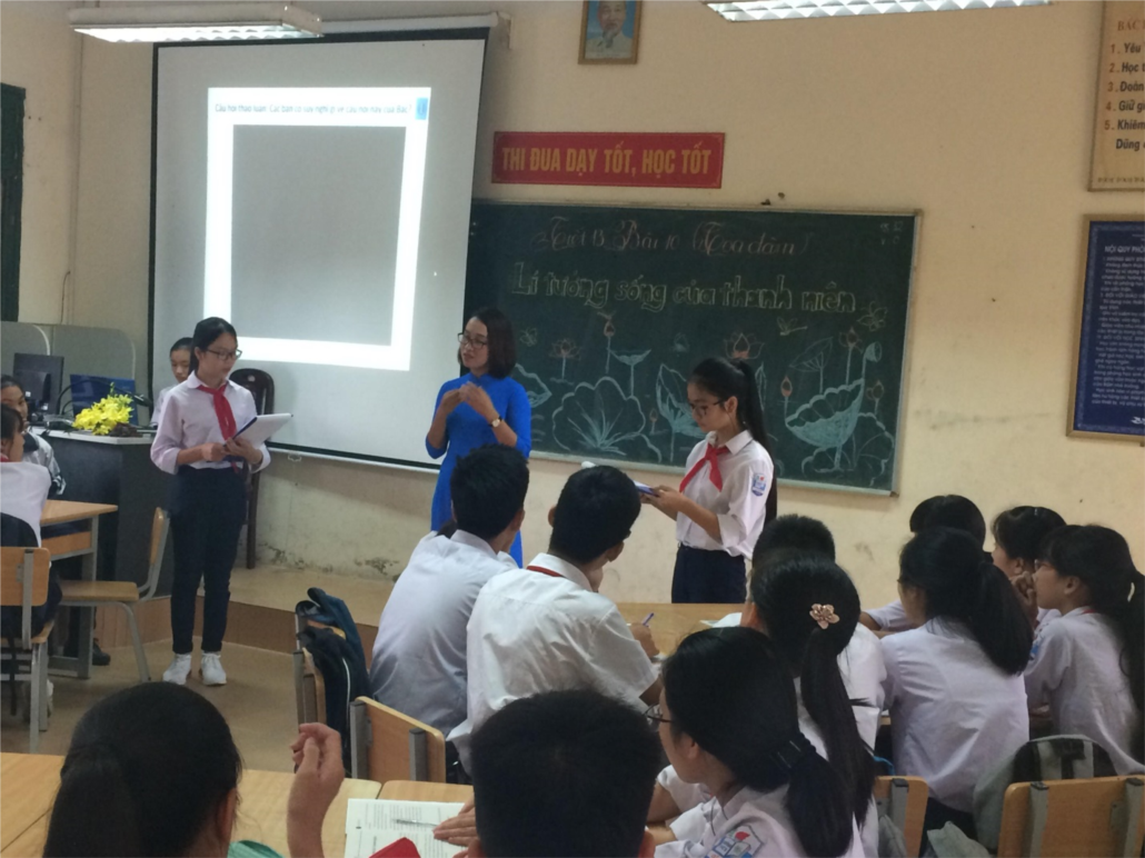 Nếu như ở tiết học đầu tiên, học sinh lớp 8C được đắm chìm trông không gian màu sắc tươi mới đầy sức hấp dẫn qua bài “Tự lập”, tất cả đã thỏa sức thể hiện những việc làm thể hiện đức tính tự lập của bản thân qua học tập, lao động và trong cuộc sống thì 32 thành viên lớp 9A lại được thoái mái đưa ra ý kiến, quan điểm của mình về “lí tưởng sống của thanh niên”, trong buổi tọa đàm các bạn học sinh còn được trực tiếp gặp gỡ với hai thế hệ đã, đang thực hiện lí tưởng sống của mình. Kết thúc tiết học tất cả học sinh lớp 9A đã có thể xây dựng được cho mình những lí tưởng sống cao đẹp, đúng đắn.
