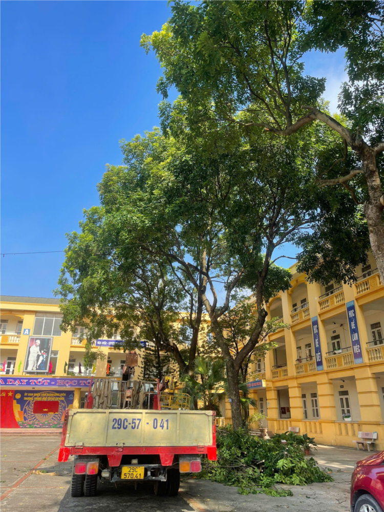 Ngày 28/8/2024, Trường THCS Cự Khối thực hiện cắt tỉa cây xanh đảm bảo an toàn trong mùa mưa bão. Để chuẩn bị cho năm học mới 2024-2025, Ban giám hiệu nhà trường đã rà soát khuôn viên nhà trường nhằm đảm bảo an toàn trường học. Việc rà soát, cắt tỉa hệ thống cây xanh trong khuôn viên nhà trường là cần thiết. Một ngôi trường với không gian xanh, sạch, đẹp tạo điều kiện thuận lợi cho việc dạy học đồng thời giáo dục tinh thần yêu thiên nhiên, ý thức bảo vệ môi trường. Bên cạnh đó cũng cần phải đảm bảo an toàn trường học trong mùa mưa bão. Ngày 28/8/2024, nhà trường đã chủ động phối hợp với đơn vị quản lý cây xanh đô thị, tiến hành cắt tỉa hệ thống cây xanh trong khuôn viên nhà trường để tránh các tai nạn thương tích.