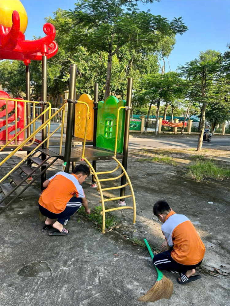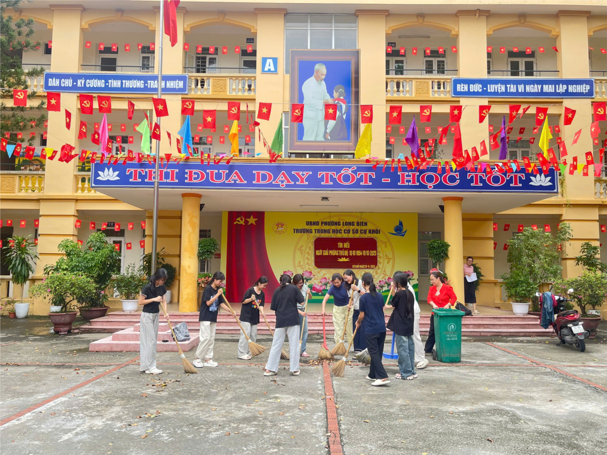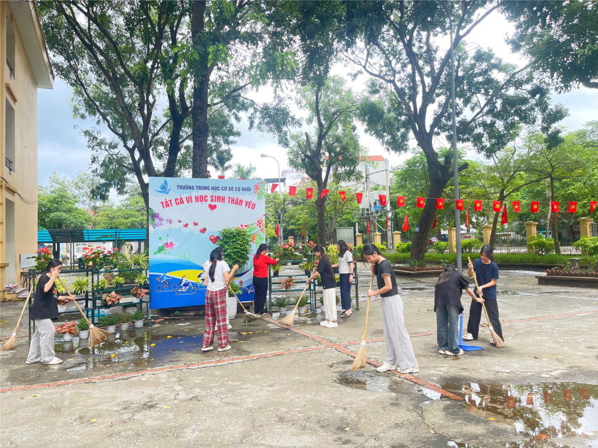 Trường THCS Cự Khối khắc phục hậu quả cơn bão số 10 và chuẩn bị đón học sinh trở lại trường