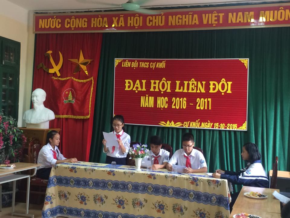 Trong Đại hội, từng đại biểu được thể hiện tính dân chủ cao thể hiện qua lá phiếu của mình. Đại hội đã thống nhất bầu Ban chỉ huy Liên đội năm học 2016 – 2017 gồm 8 thành viên. Đây là những bạn đội viên ưu tú, có đủ năng lực, hạnh kiểm tốt, yêu thích công tác Đội. Đại hội tin tưởng rằng với năng lực và sự nhiệt tình của mình, các bạn trong Ban chỉ huy Liên đội khóa mới sẽ phát huy hết khả năng của mình để từng bước đưa Liên đội trường THCS Cự Khối trở thành Liên đội Xuất sắc, đạt nhiều thành tích trong phong trào thiếu nhi quận Long Biên