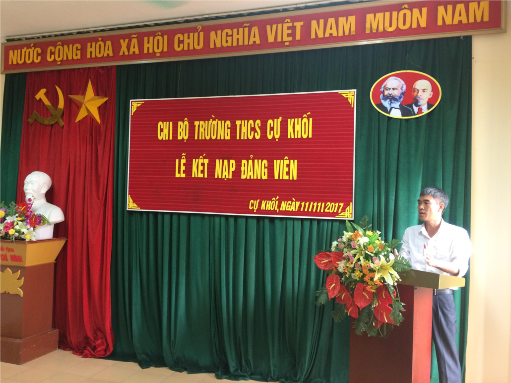 Tới dự lễ kết nạp có đ/c Dương Văn Tuynh - Bí thư chi bộ - Hiệu trưởng nhà trường toàn thể các đồng chí đảng viên trong Chi bộ. Lễ kết nạp được diễn ra trong không khí trang nghiêm, đúng trình tự, thủ tục của Điều lệ Đảng.