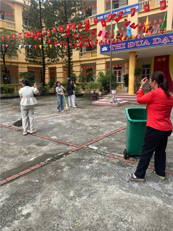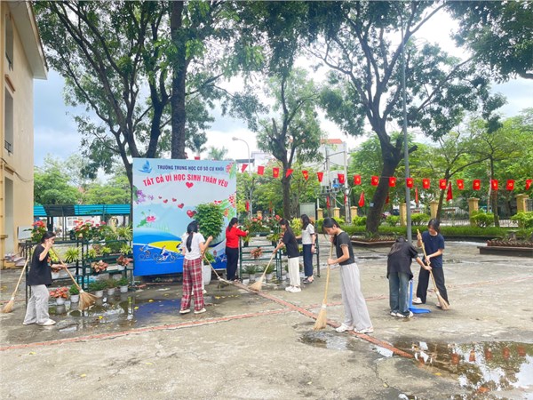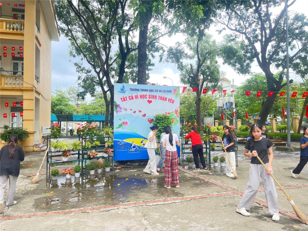 Tập ảnh : Trường THCS Cự Khối khắc phục hậu quả cơn bão số 10 và chuẩn bị đón học sinh trở lại trường